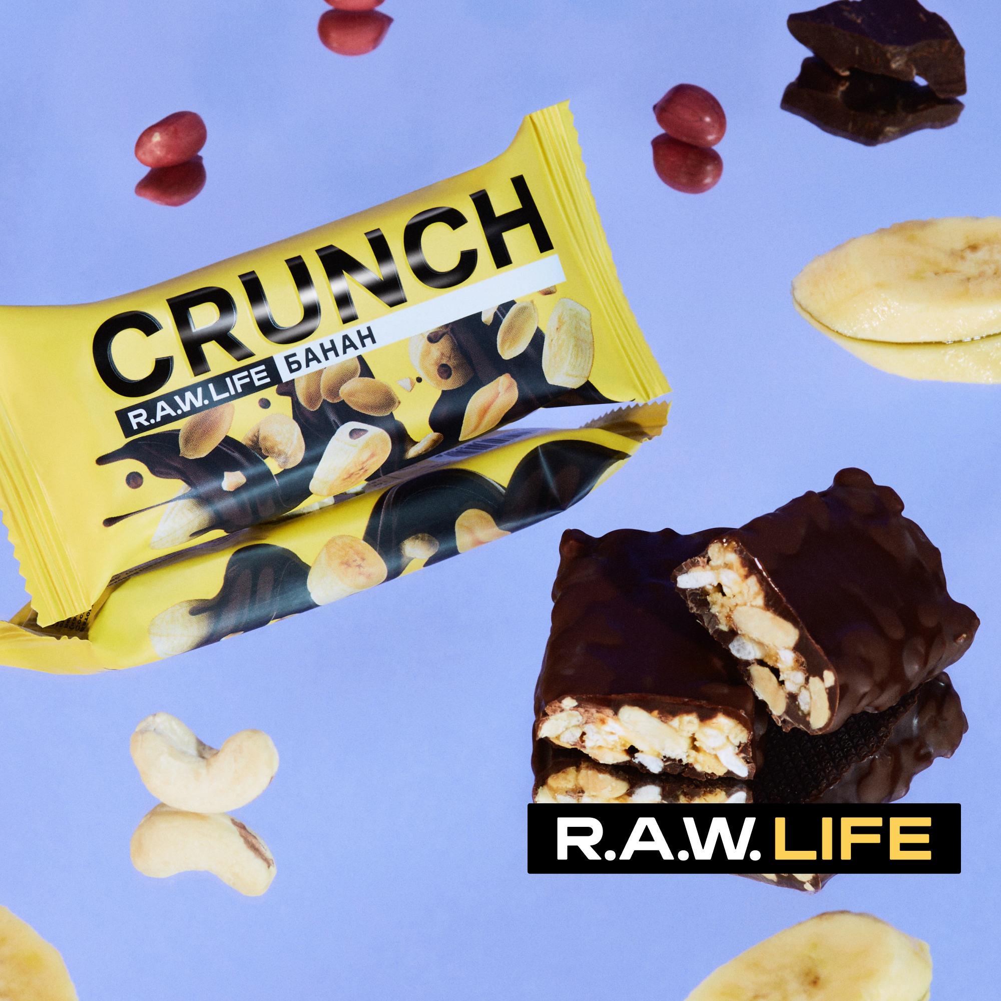 Энергетические батончики без сахара R.A.W.LIFE CRUNCH с бельгийским шоколадом / Злаковые, натуральные, много орехов / Ассорти 12 шт по 40 гр интересное: