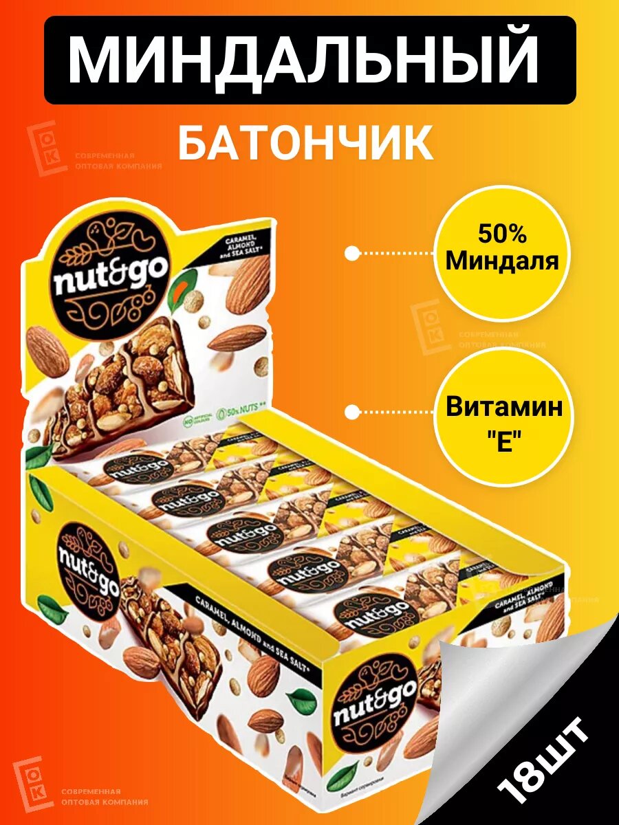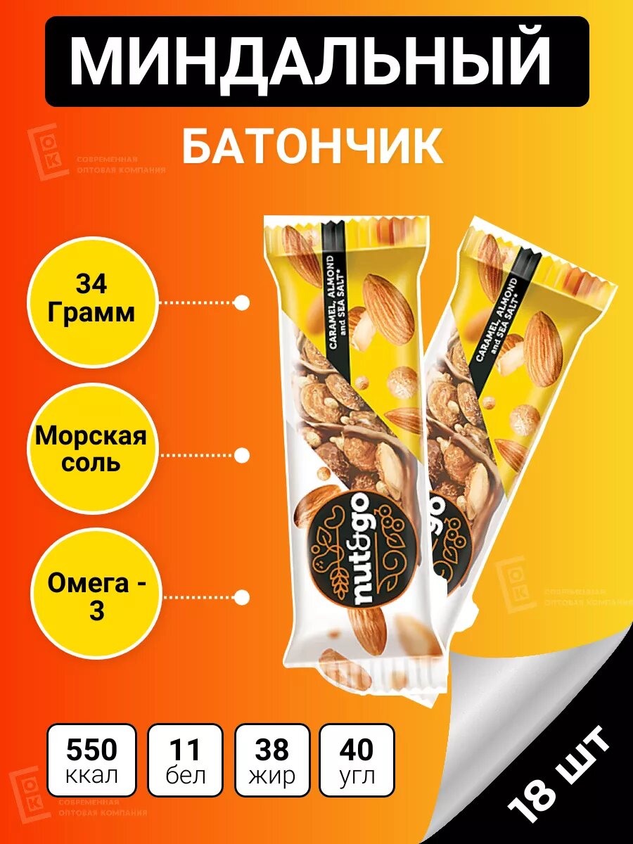 Батончик злаковый Nutngo Миндаль 34гр, 18шт/уп интересное: