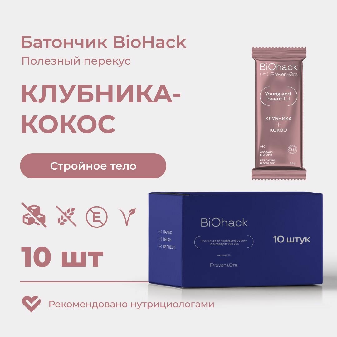 PreventEra Батончики без сахара Клубника-кокос (Стройное тело) Спортивные Натуральные 10 шт интересное: