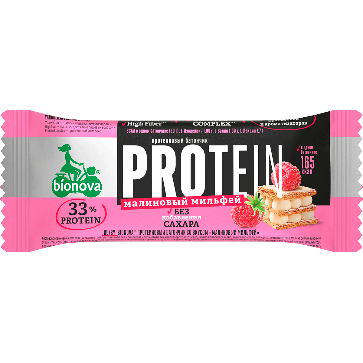 Купить Протеиновый батончик Bionova Без сахара Малиновый мильфей