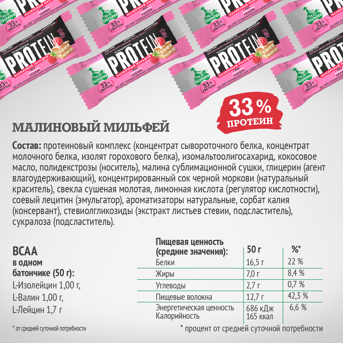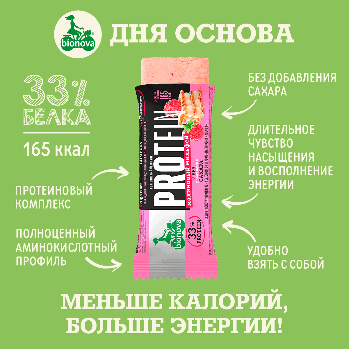 Протеиновый батончик Bionova Без сахара Малиновый мильфей интересное: