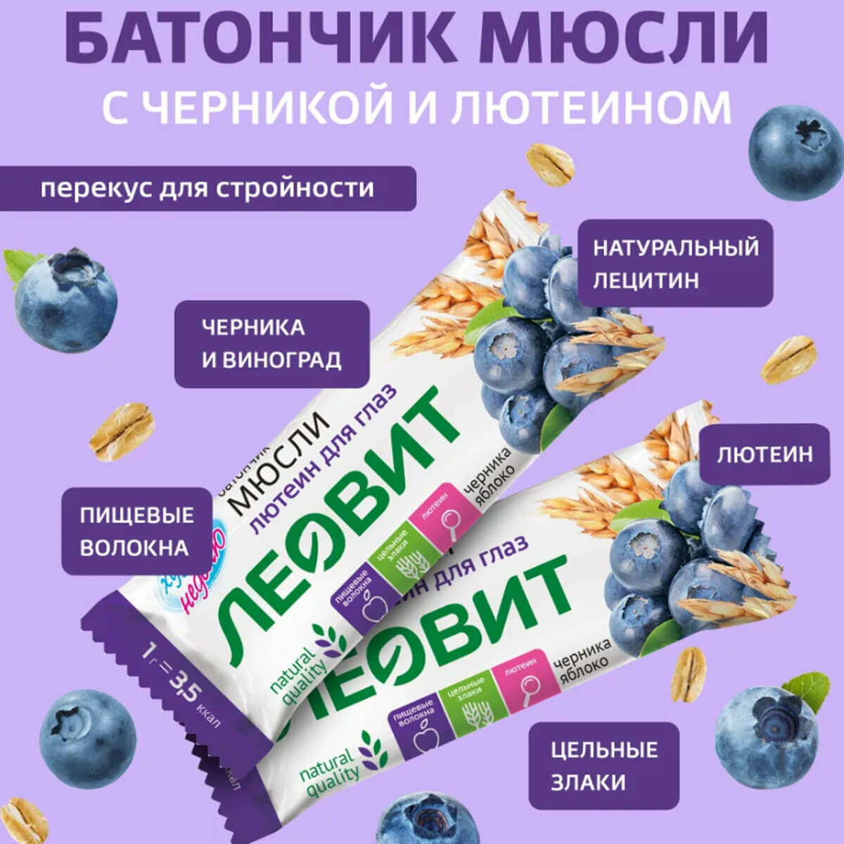 Батончик-мюсли с черникой и лютеином, 26 шт по 30 г, леовит интересное: