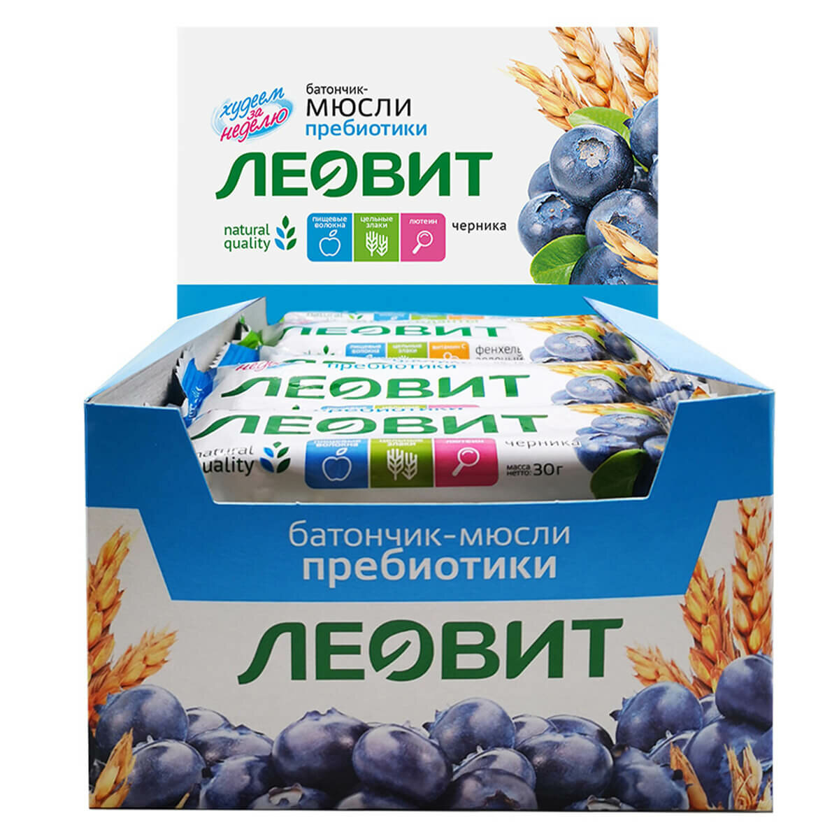 Купить Батончик-мюсли с черникой и лютеином, 26 шт по 30 г, леовит