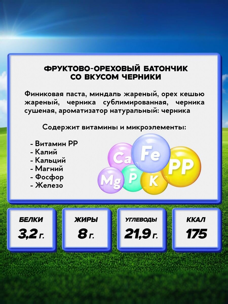 SOJ Фруктово-ореховый батончик со вкусом Черники "МИНДАЛЬ-КЕШЬЮ-ЧЕРНИКА" 40г*27шт интересное: