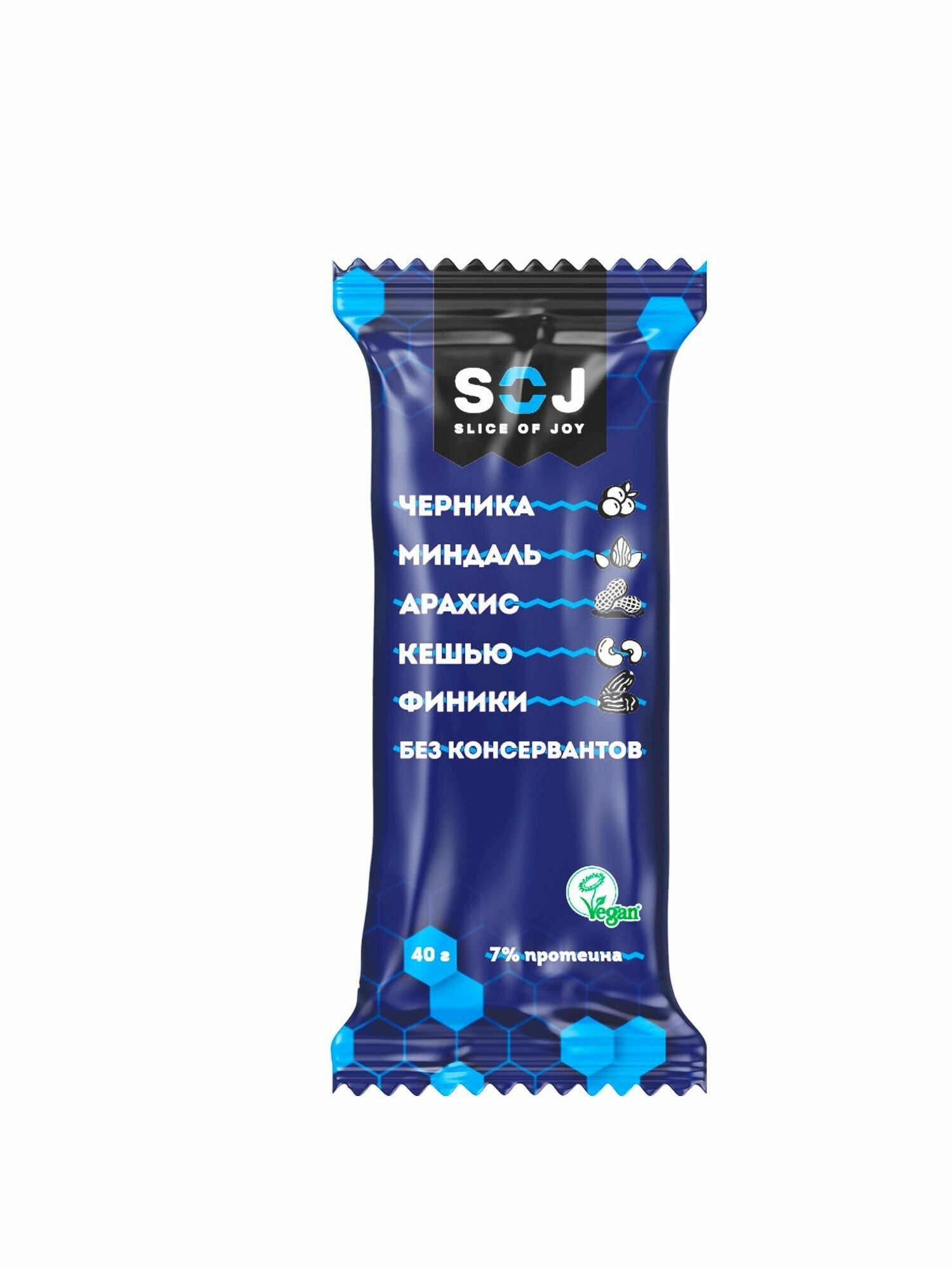 Купить SOJ Фруктово-ореховый батончик со вкусом Черники "МИНДАЛЬ-КЕШЬЮ-ЧЕРНИКА" 40г*27шт
