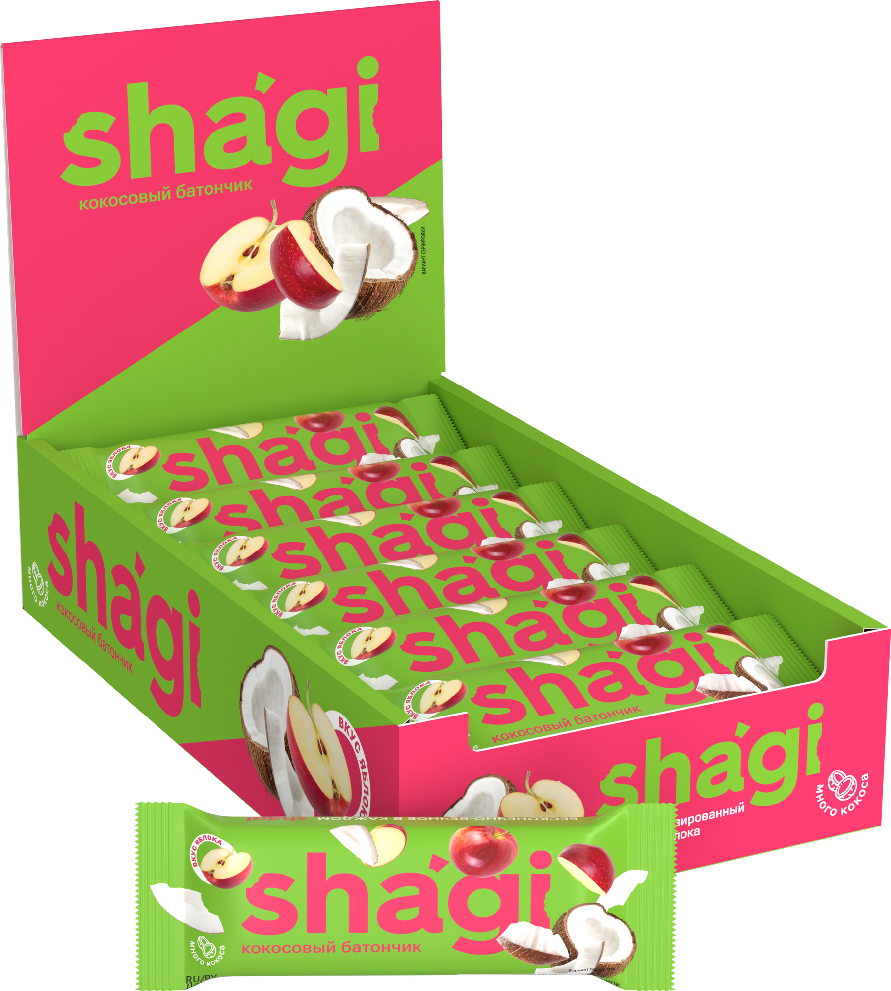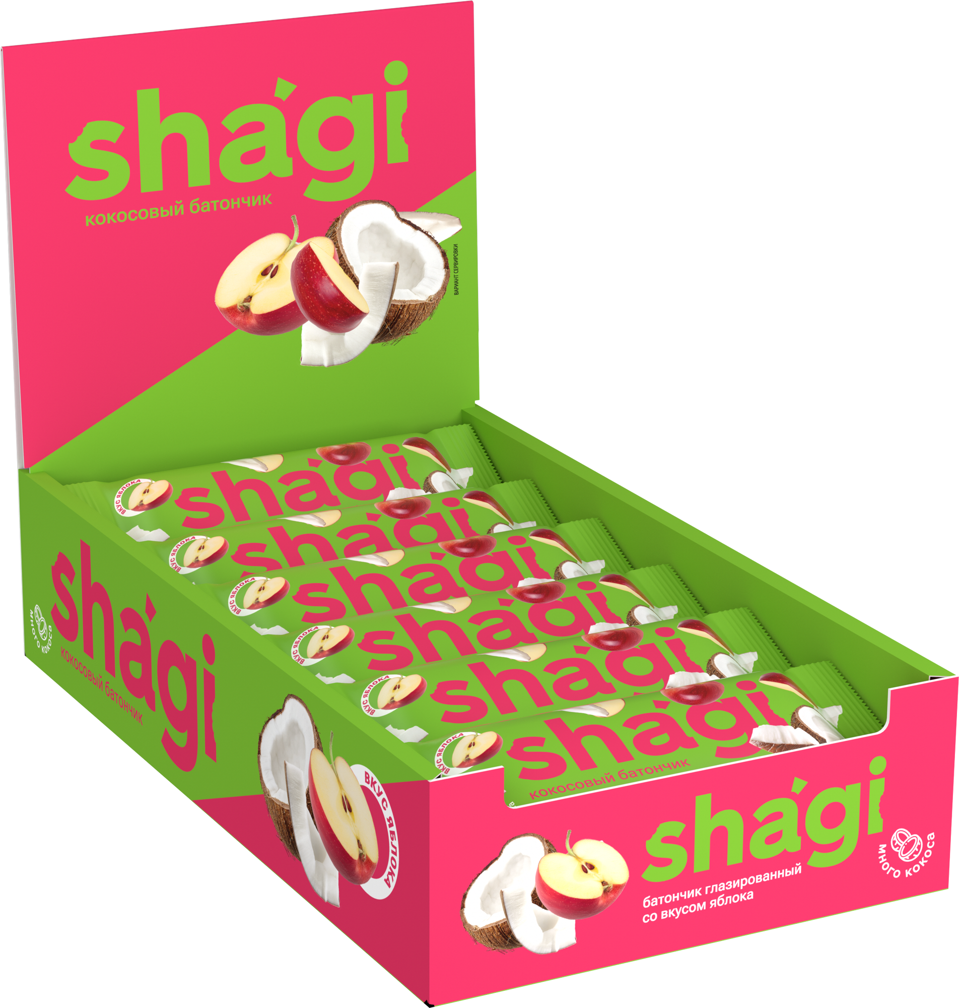 Купить ProteinRex 40г.*15шт. Батончик кокосовый Shagi Яблоко Протеин Рекс