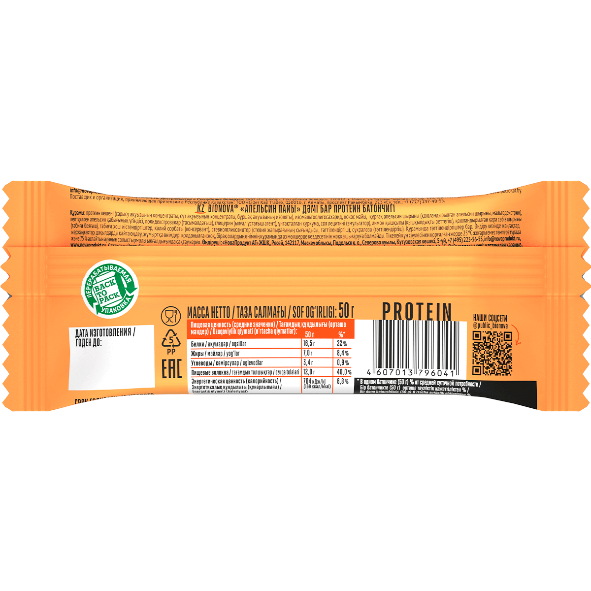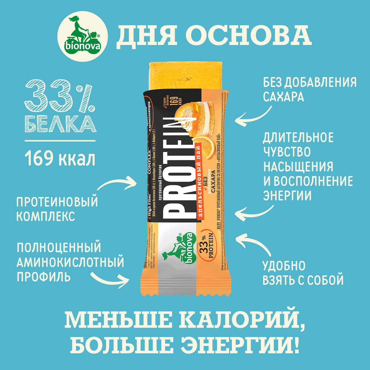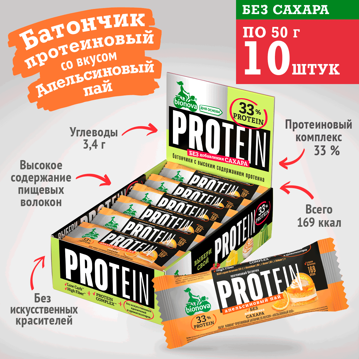 Протеиновый батончик Bionova Без сахара Апельсиновый пай интересное:
