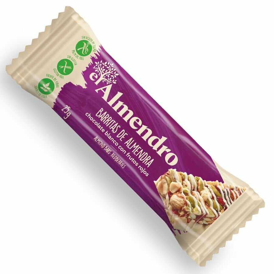 Ореховый батончик El Almendro из миндаля и фундука с белым шоколадом и ягодами коробка 100 гр интересное: