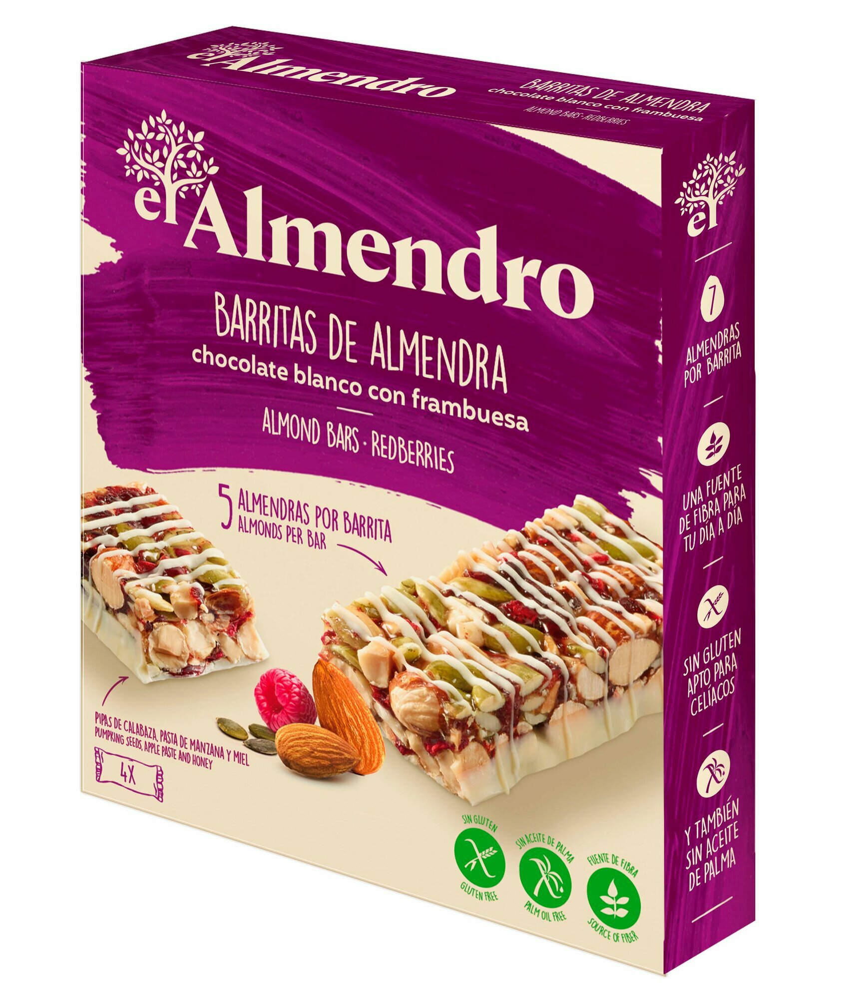 Купить Ореховый батончик El Almendro из миндаля и фундука с белым шоколадом и ягодами коробка 100 гр