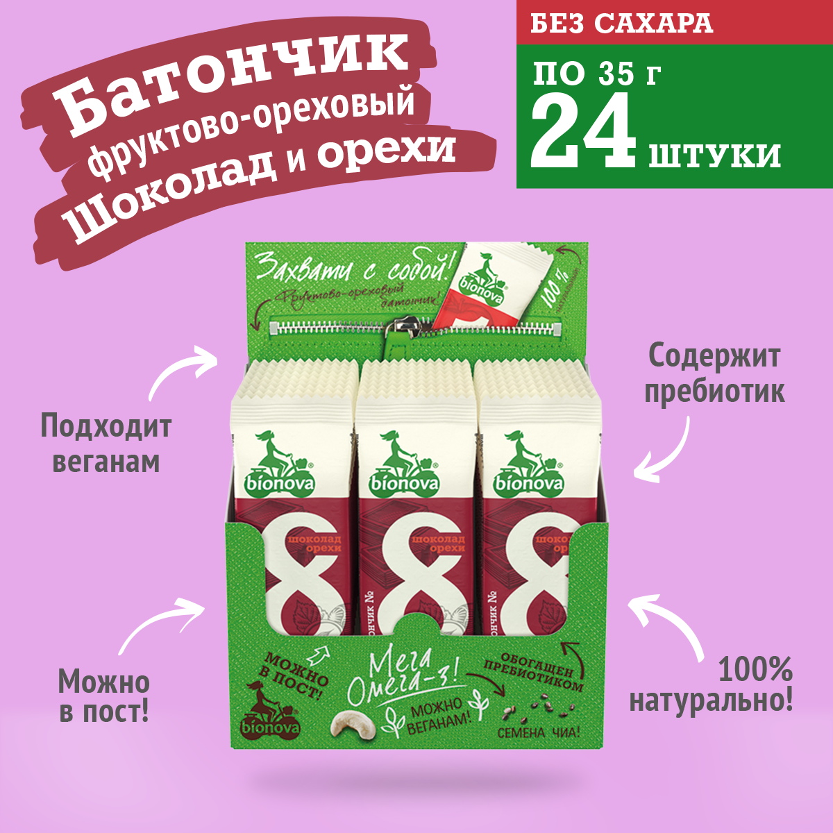 Батончик фруктово-ореховый Бионова с шоколадом 35г по 24шт интересное: