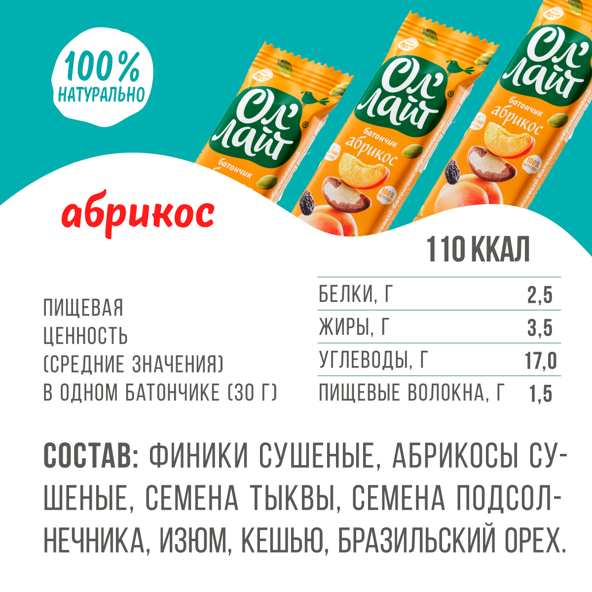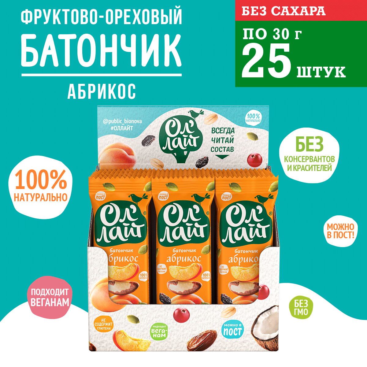 Фруктовый батончик Ол' Лайт без сахара Абрикос интересное: