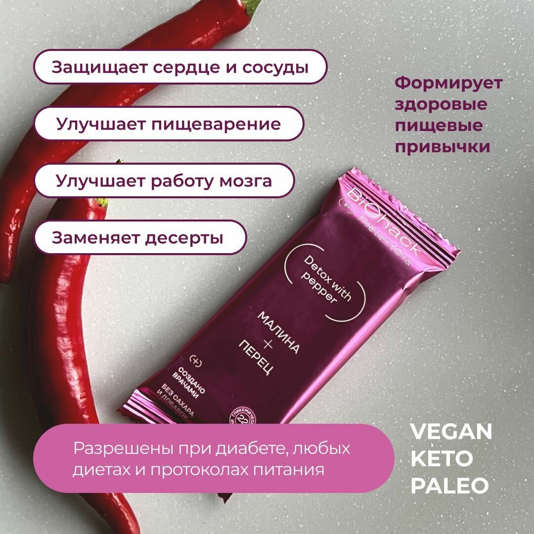 Батончик Малина-Перец PreventEra 5 шт. Спортивный батончик без сахара, без глютена, веган. Натуральные ПП сладости. интересное: