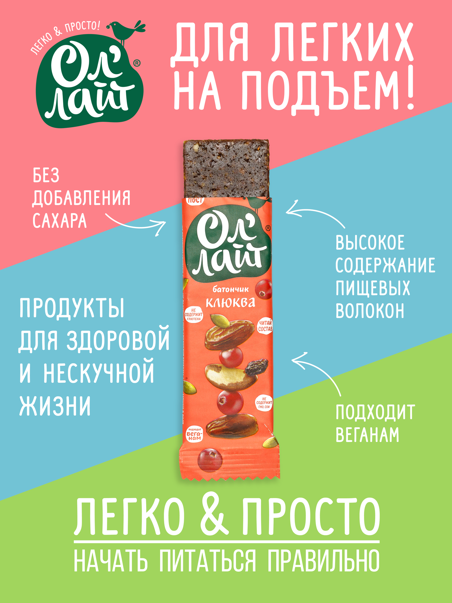 Фруктовый батончик Ол' Лайт без сахара Клюква интересное: