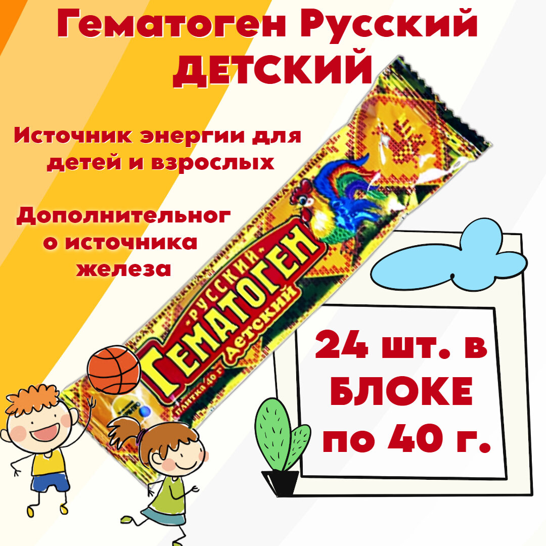 Гематоген "Русский" детский, в наборе 24 батончика по 40 грамм интересное: