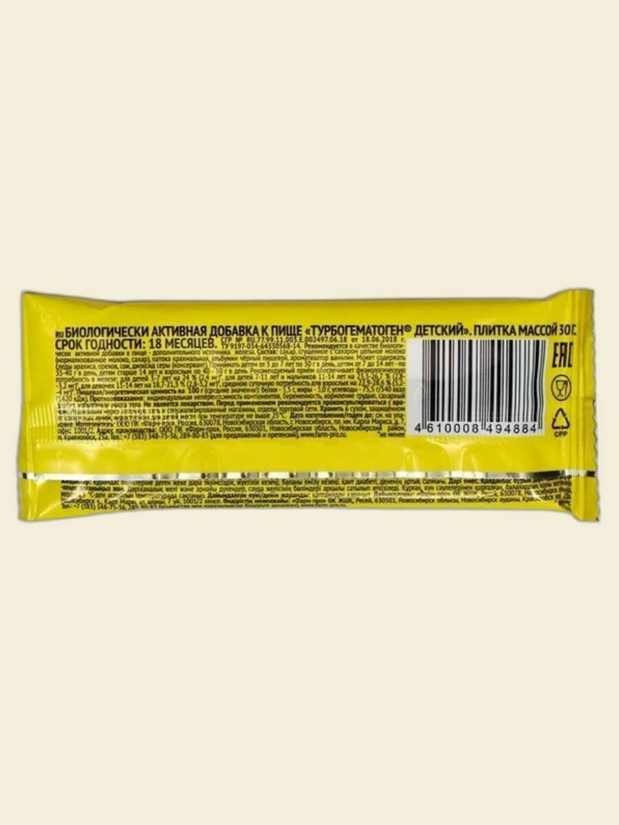 Гематоген Турбо "Детский" с 3-х лет, в наборе 24 упаковки по 30 грамм интересное: