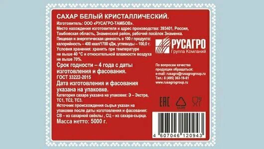 Сахар Русский сахар, сахарный песок, 5 кг. интересное: