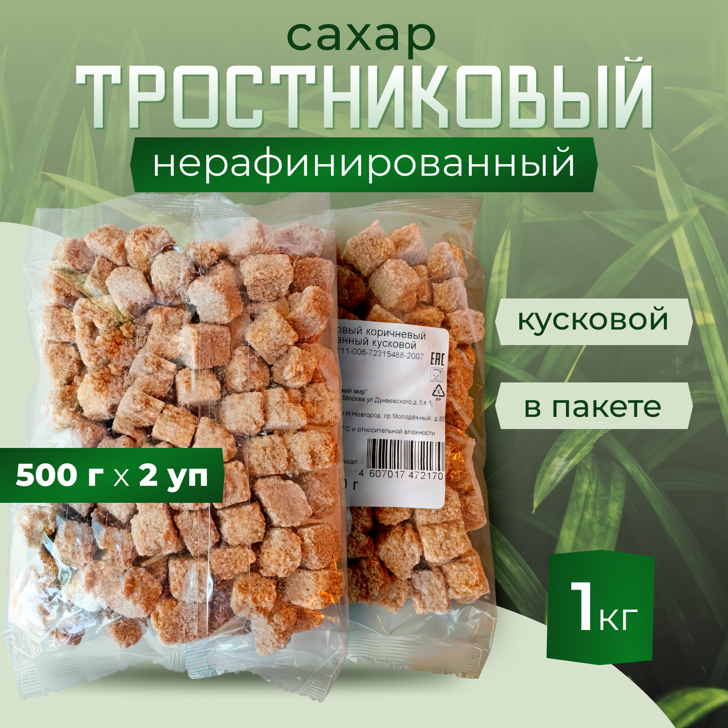 Купить Сахар тростниковый кусковой коричневый нерафинированный, 500г х 2 шт.