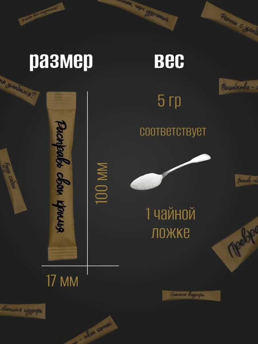 Сахар белый GoodCup порционный в стиках 5 грамм 200 штук, 1 кг, с пожеланиями в крафтовой упаковке