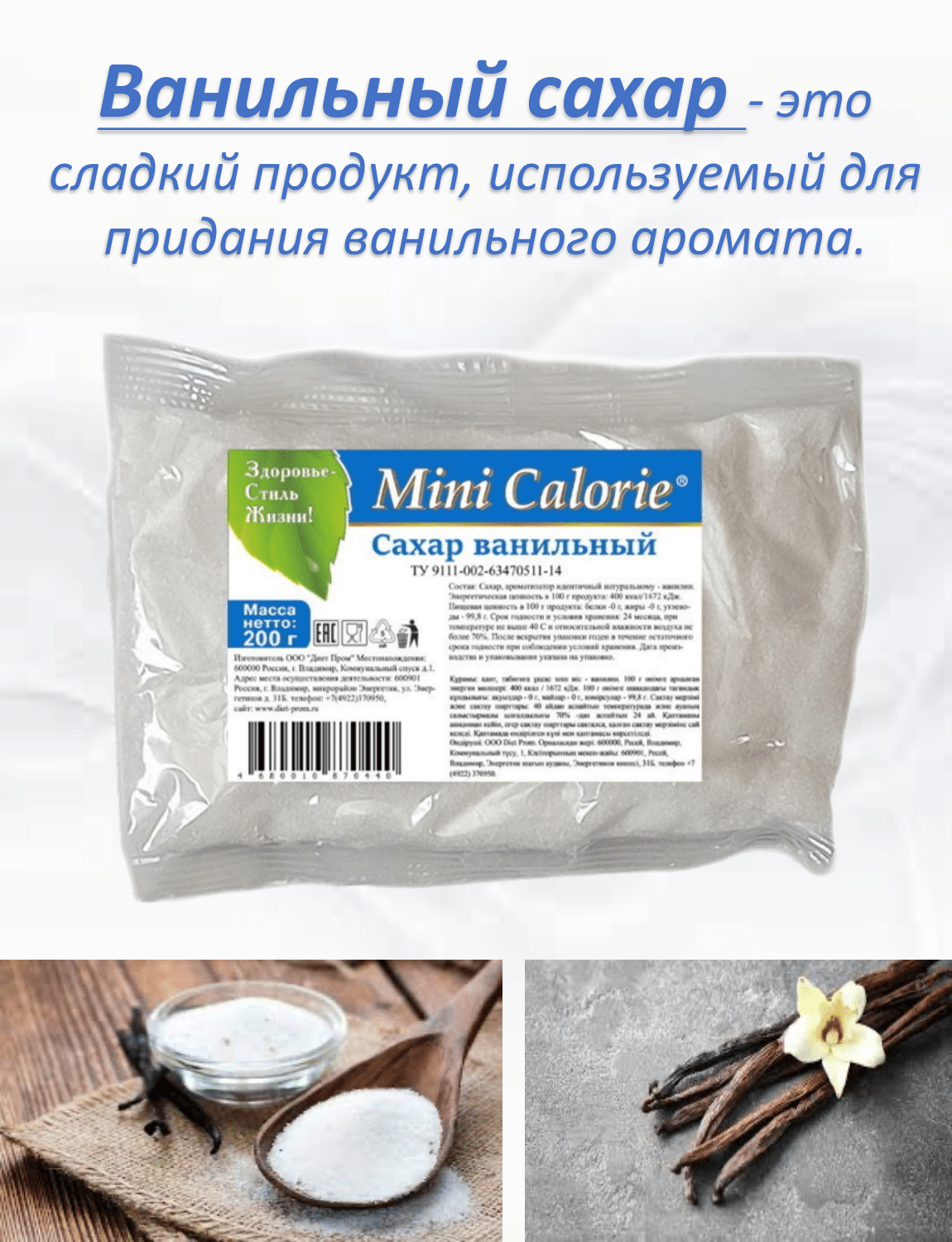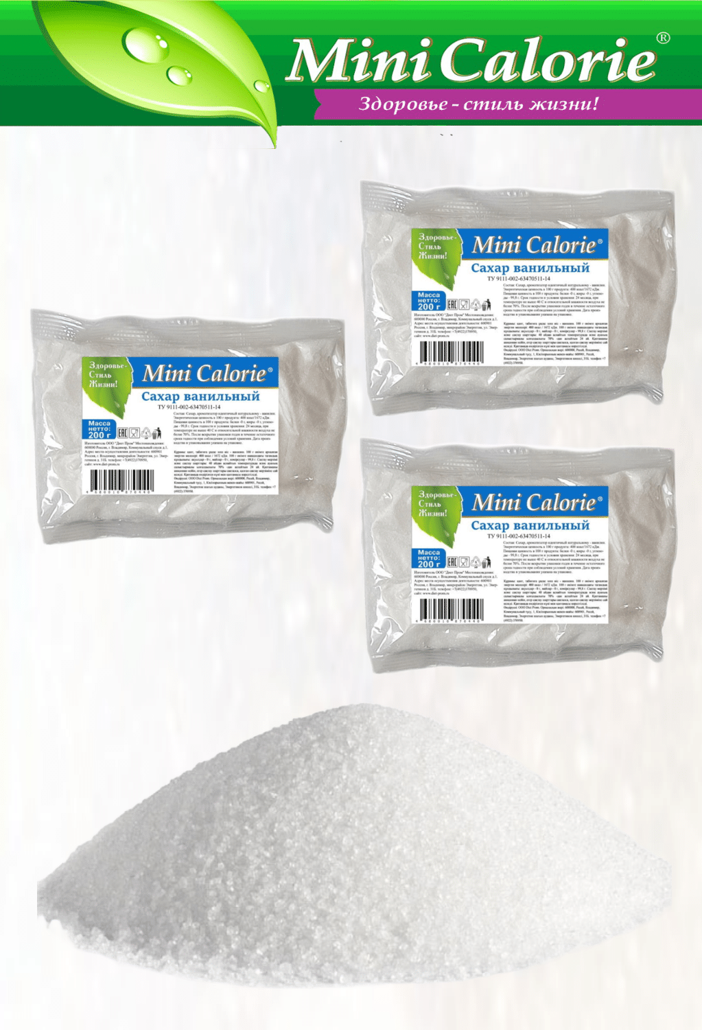 Сахар ванильный 600 г (3 шт * 200 г), Mini Calorie кристаллический интересное: