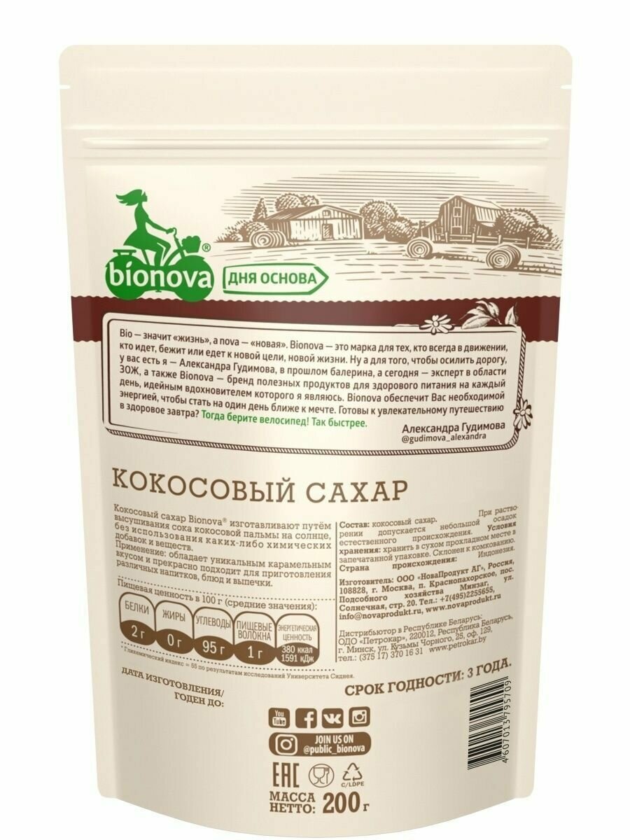 BIONOVA Органический Кокосовый Сахар (дой пак) 200гр интересное: