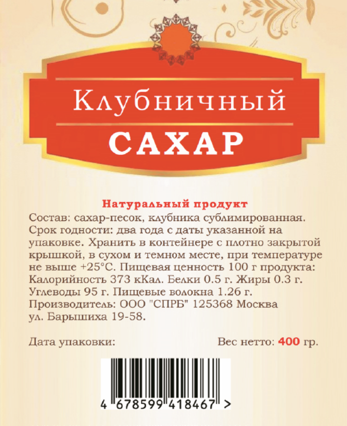 Сахар Клубничный 400 гр. Эко продукт из ягод клубники интересное:
