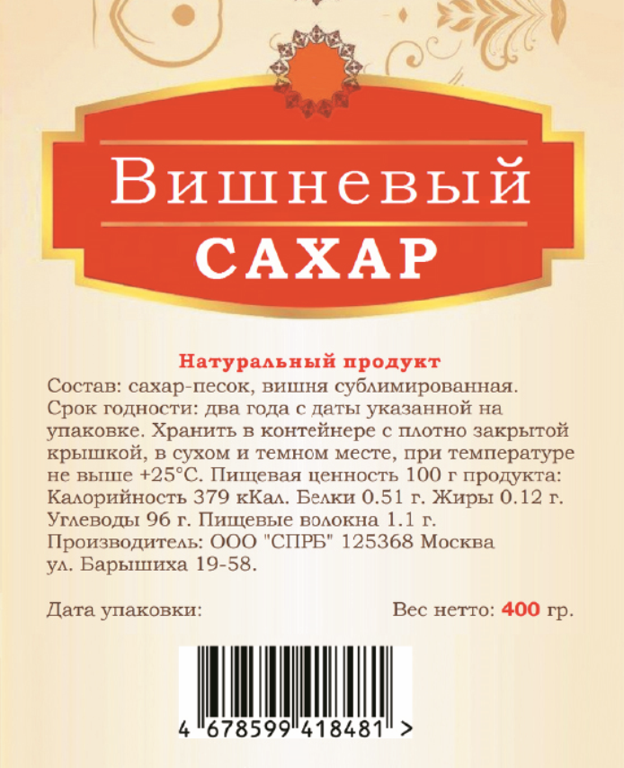 Сахар Вишневый 400 гр. Эко продукт из спелой вишни интересное: