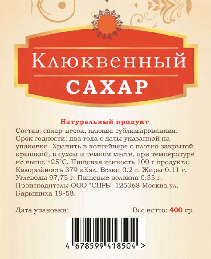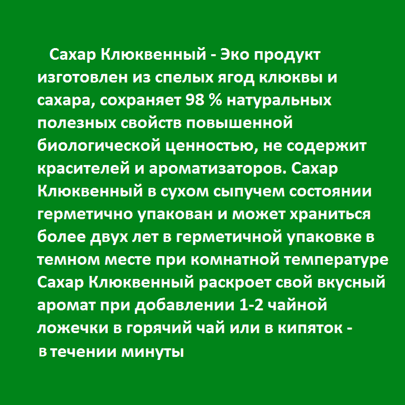 Сахар Клюквенный 400 гр. Эко продукт из ягод клюквы интересное: