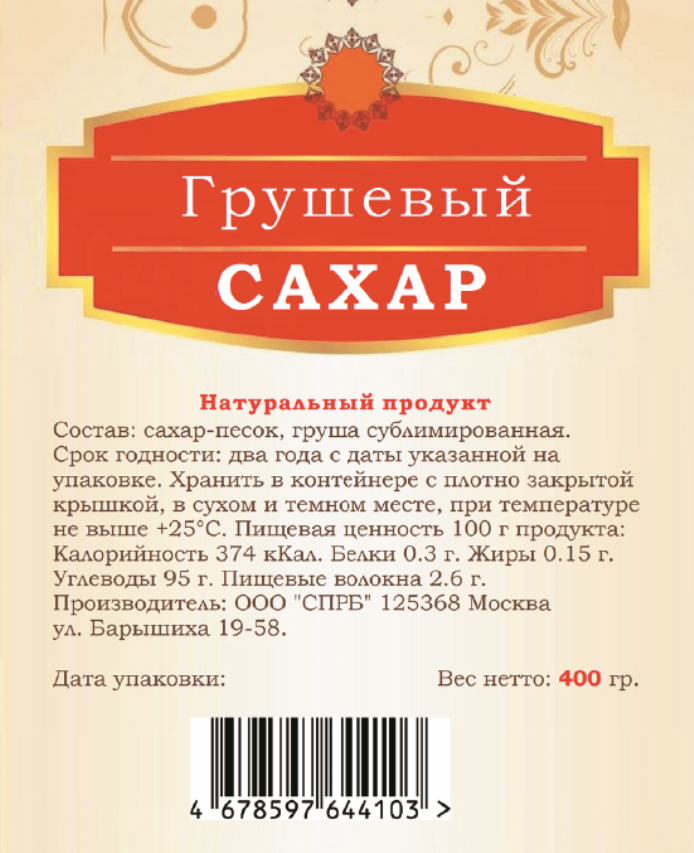 Сахар Грушевый 400 гр. Эко продукт из спелой груши интересное: