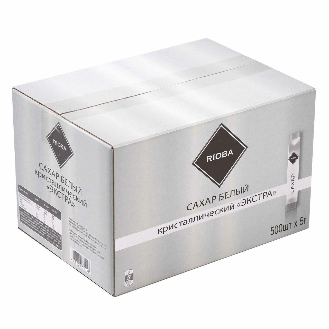 Сахар белый кристаллический экстра RIOBA, 500 шт./уп, 2.5 кг интересное: