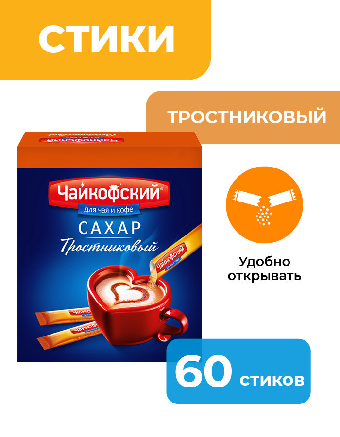 Сахар порционный Чайкофский, 60 пакетиков по 5г, коричневый, тростниковый интересное: