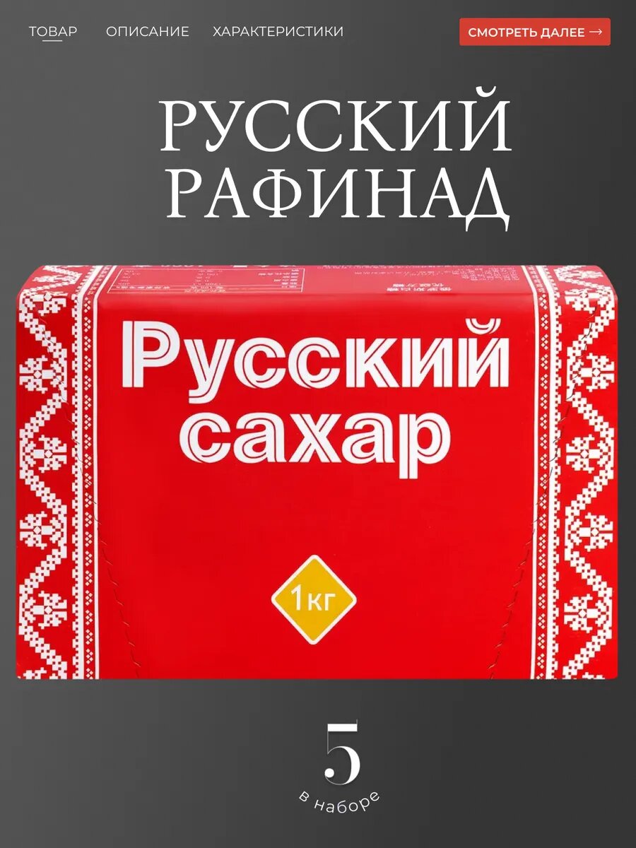 Сахар рафинад РусАгро "Русский", 1кг, картонная коробка, 5шт. интересное: