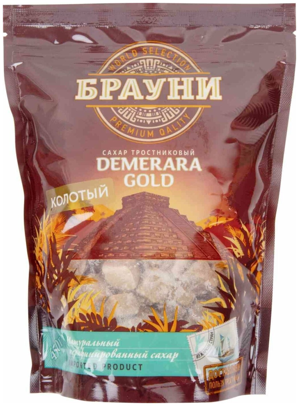 Упаковка из 12 пачек Сахар колотый тростниковый Брауни Gold 450г zip-пакет интересное: