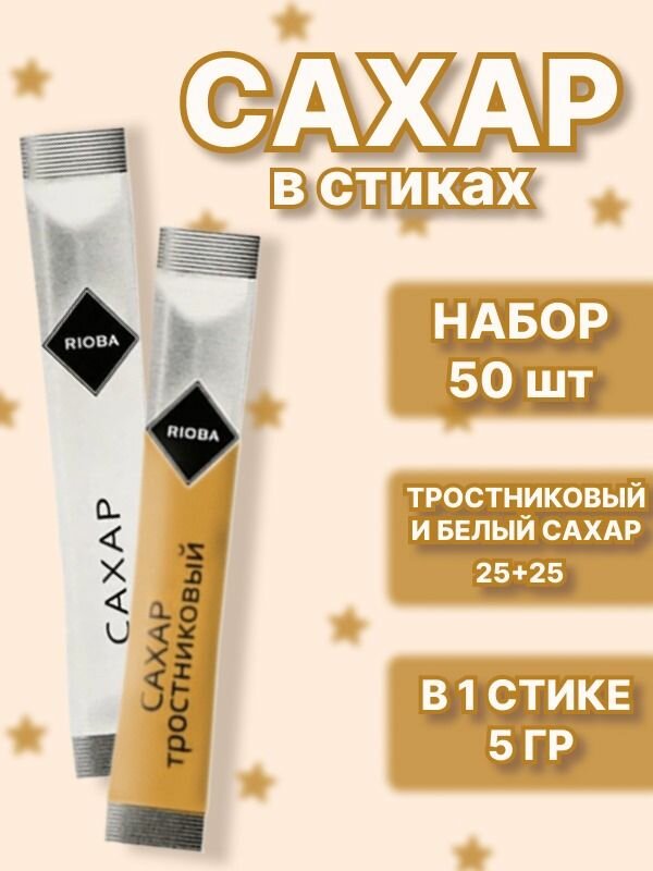 Набор Тростниковый сахар стики 25 шт.+ Белый сахар стики 25 шт. интересное: