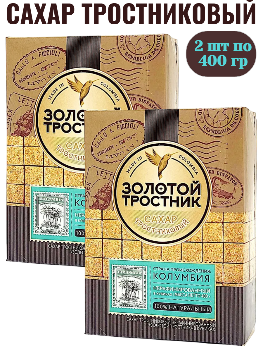 Золотой тростник сахар тростниковый, нерафинированный в кубиках, 400 г - 2 шт.