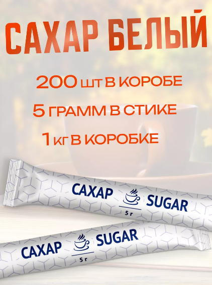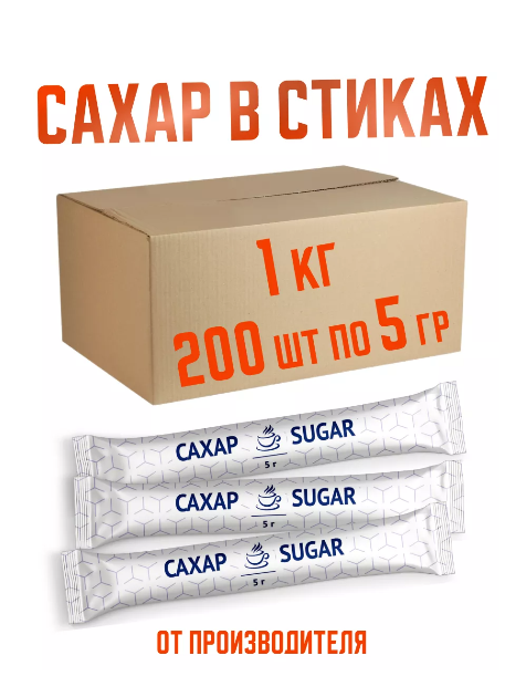 Сахар белый порционный в стиках, 1 пакетик/5гр, 200шт/1упаковка/1кг. интересное: