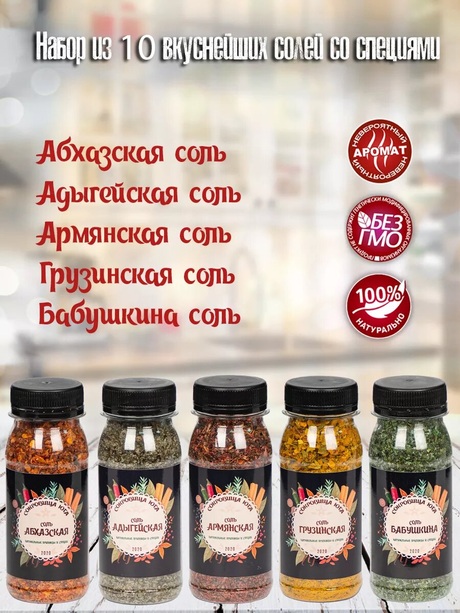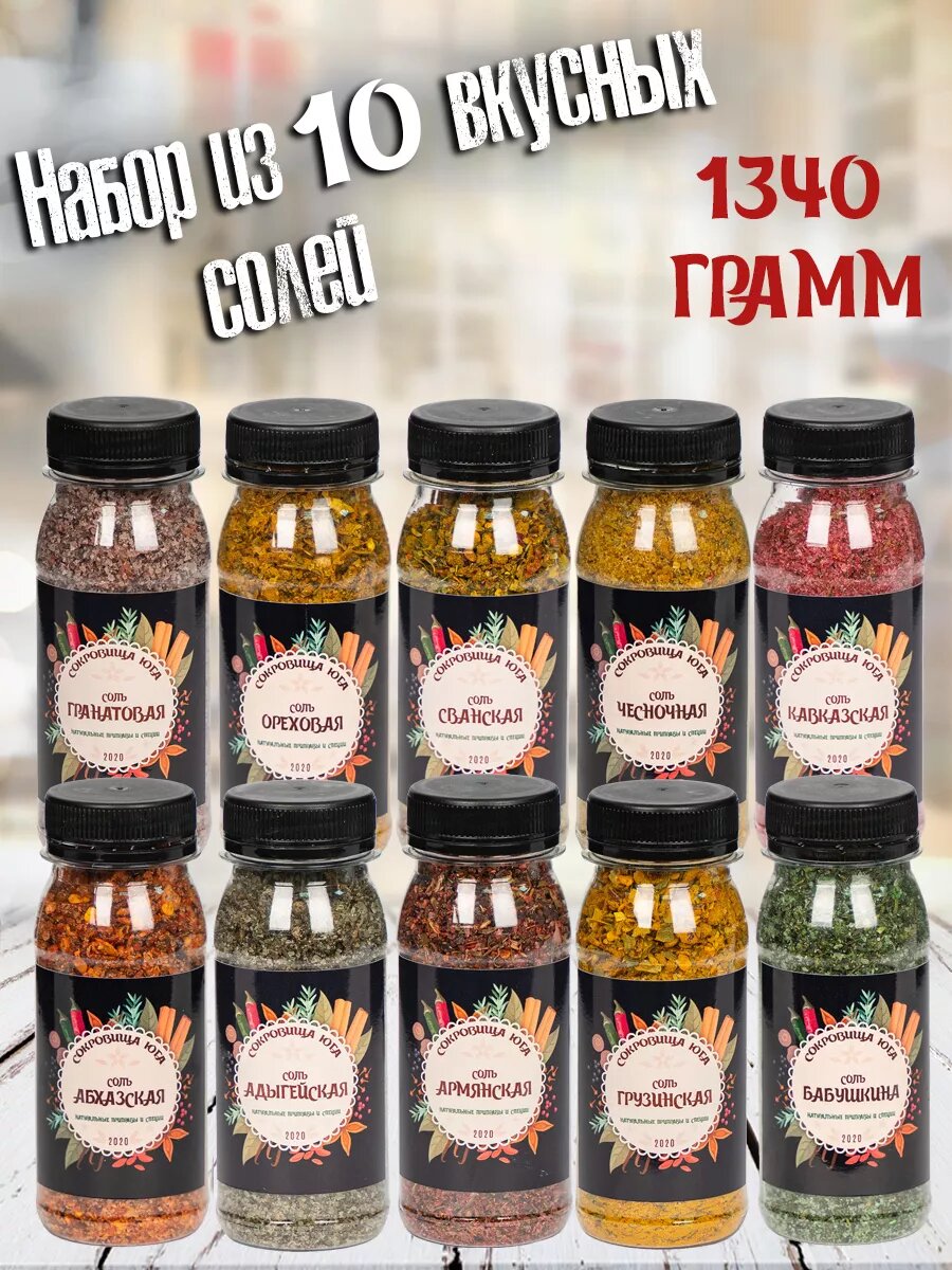 Набор вкусных, натуральных солей со специями из 10 видов с Кавказа интересное:
