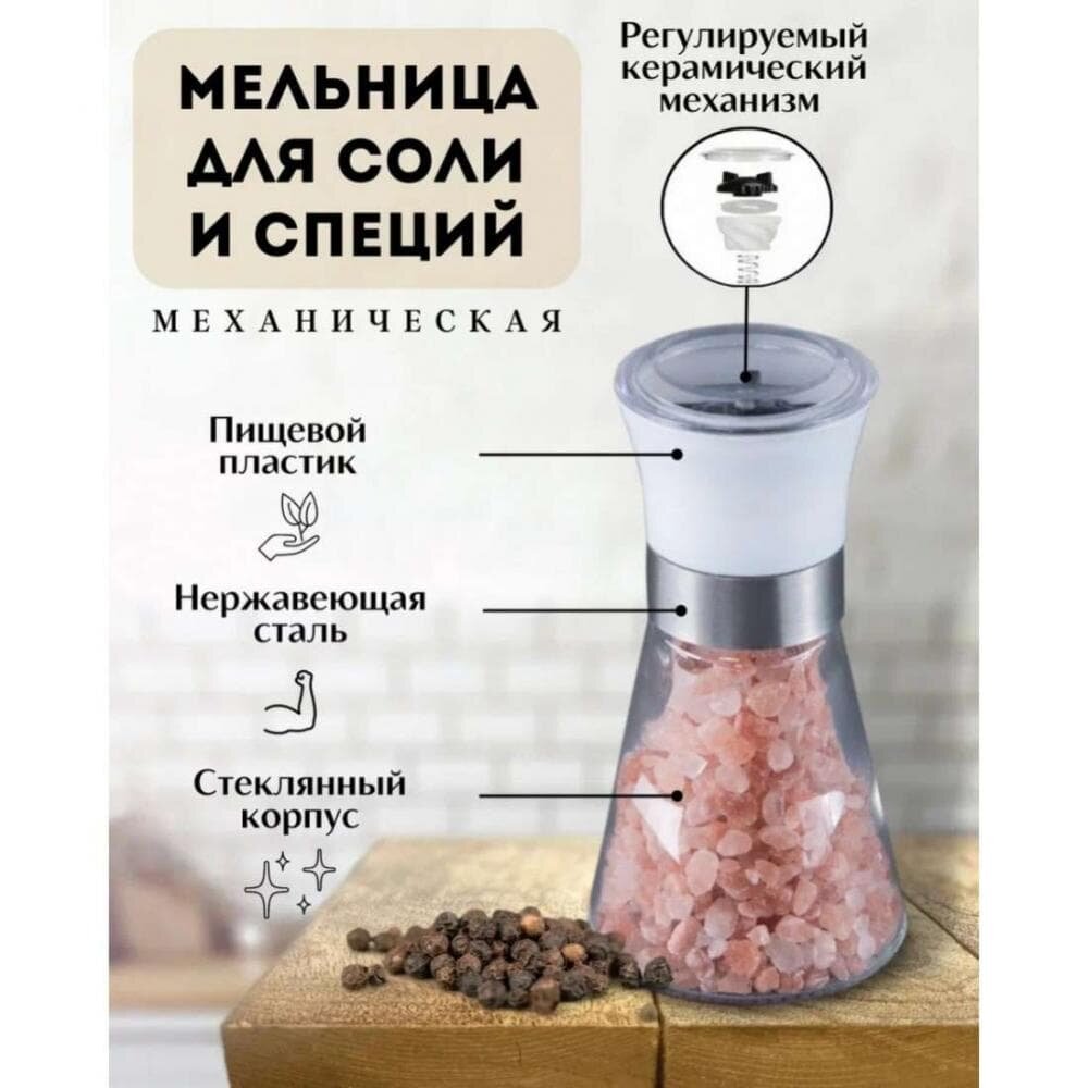 Мельница для специй и соли с керамическими жерновами, многоразовая, с розовой Гималайской солью Wonder Life интересное: