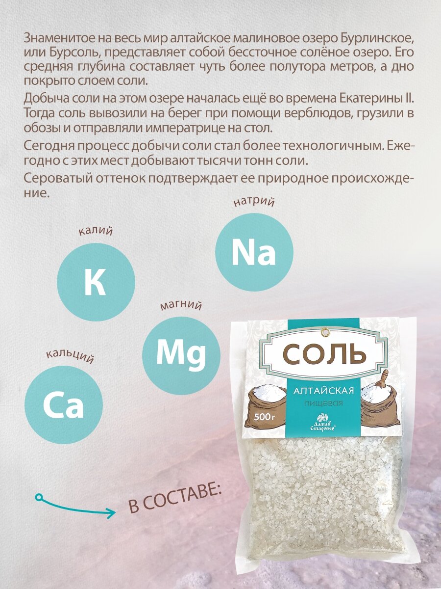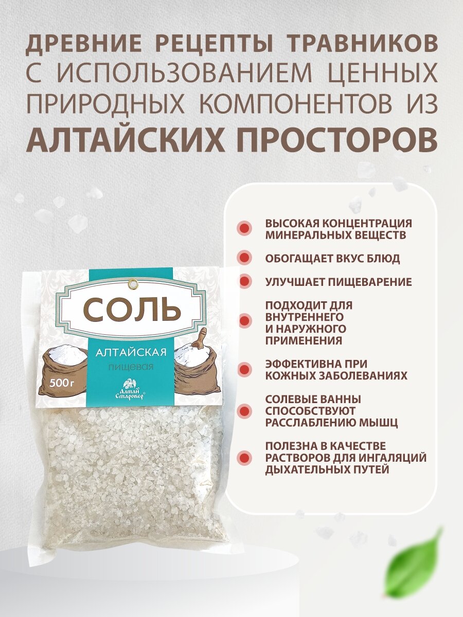 Соль алтайская пищевая, крупная, для мельниц, 500 г, Алтай Старовер интересное: