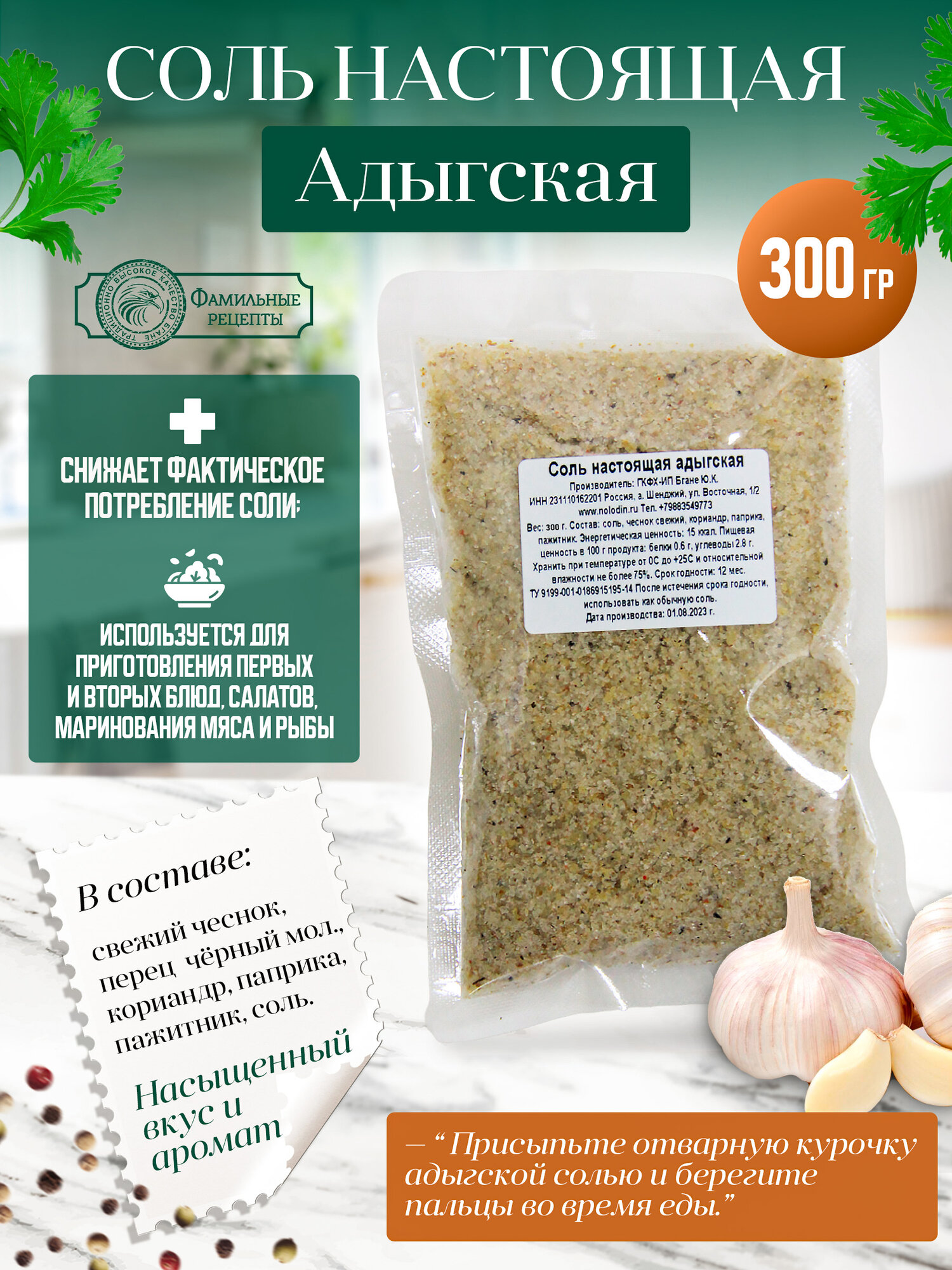 Адыгейская соль "Фамильные Рецепты", с чесноком и травами, 300г интересное: