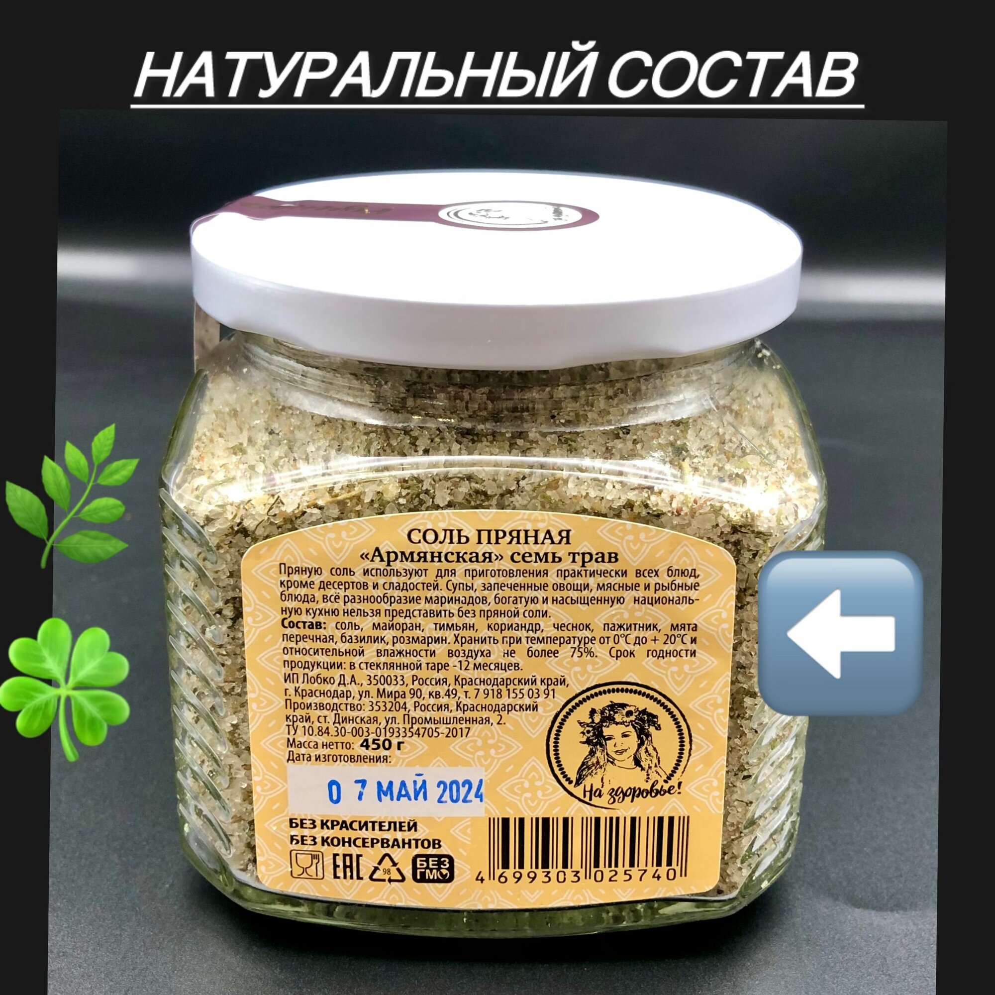 Соль Армянская пряная 7 (семь) трав, ручная работа, Краснодарский край, 450 гр Х 1 шт, стекло, винтовая крышка интересное: