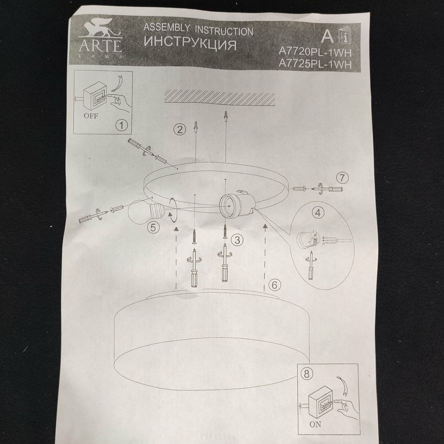 Arte Lamp A7720PL-1WH, E27, 60 Вт, 1 лампа