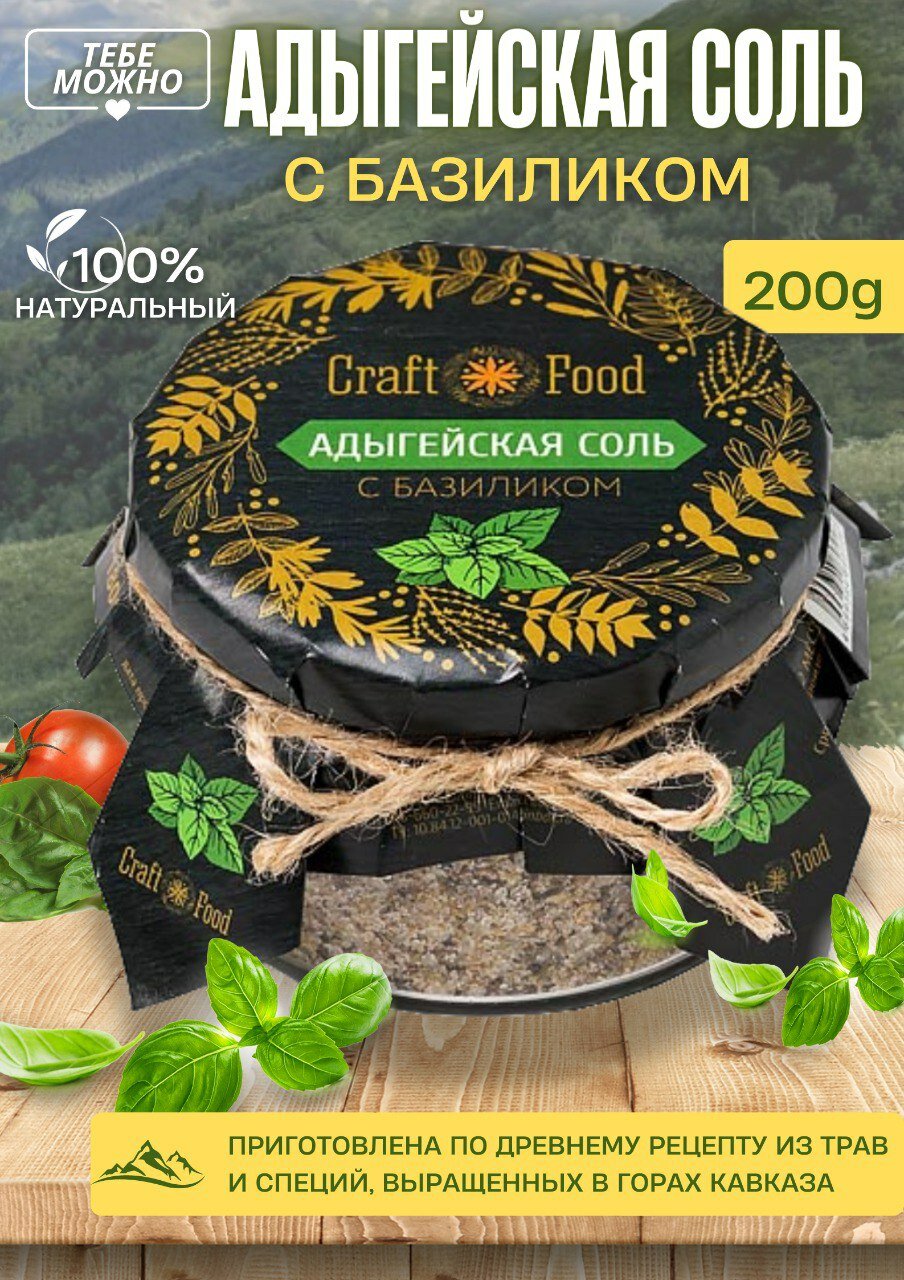 Соль адыгейская Craft Food, с базиликом, стеклянная банка, 180 гр. интересное: