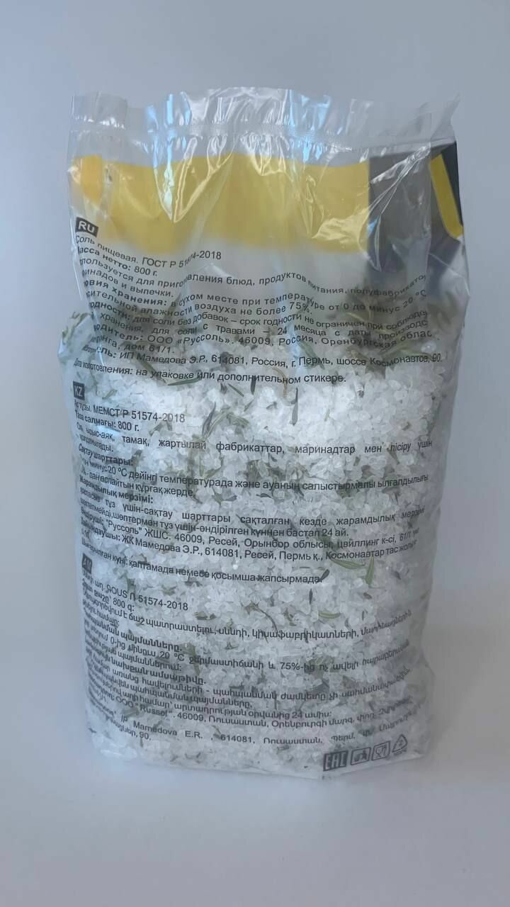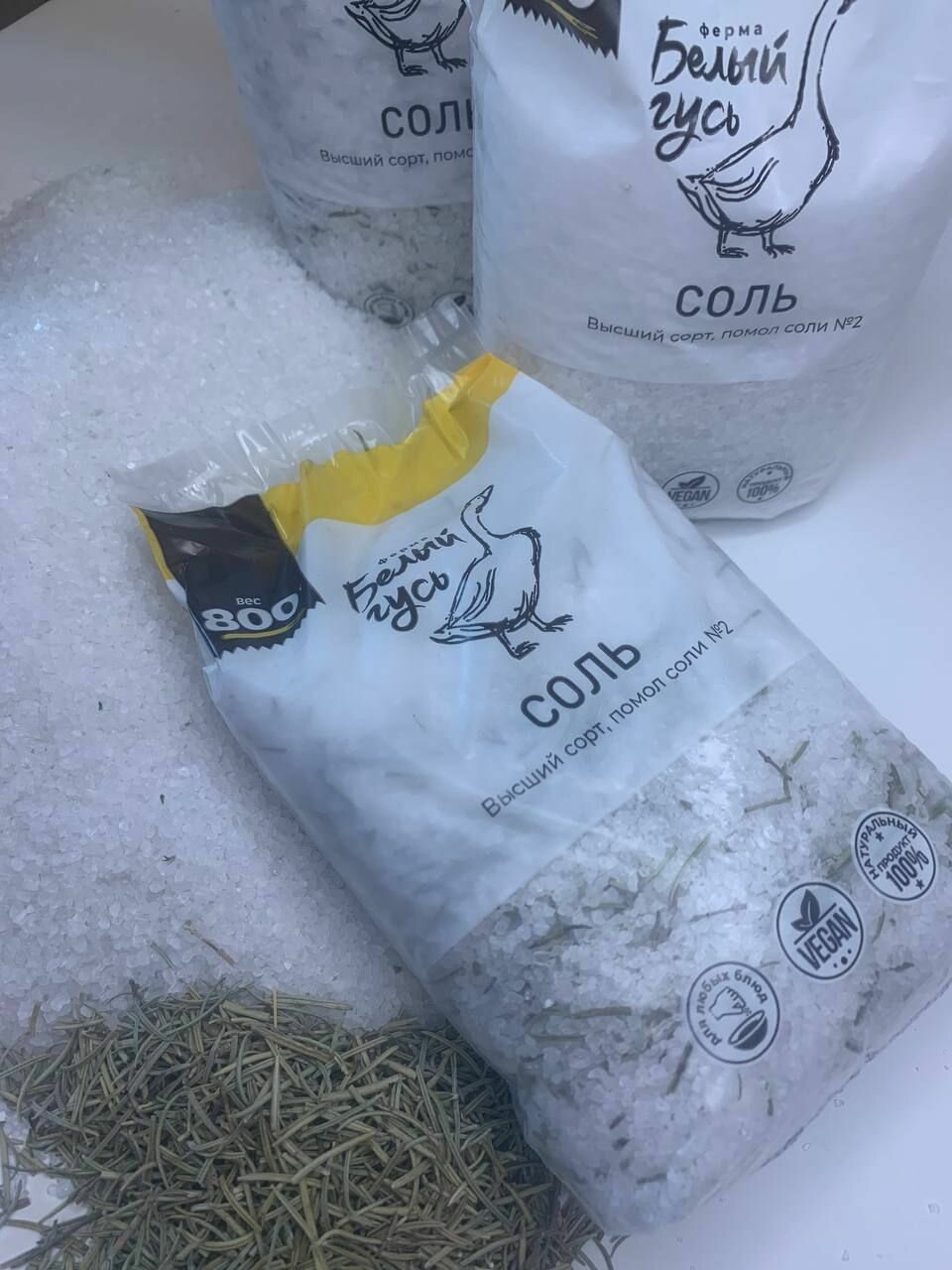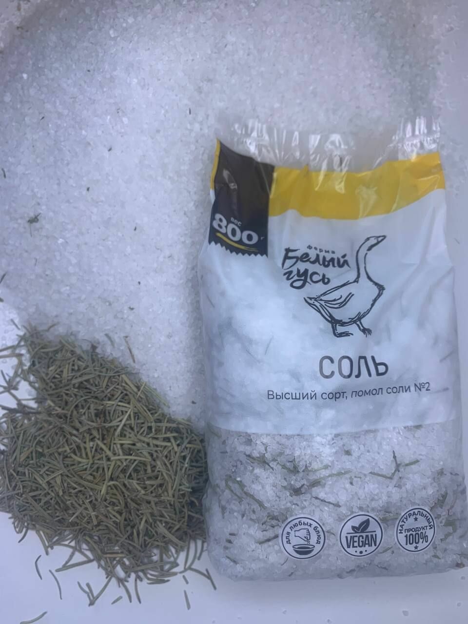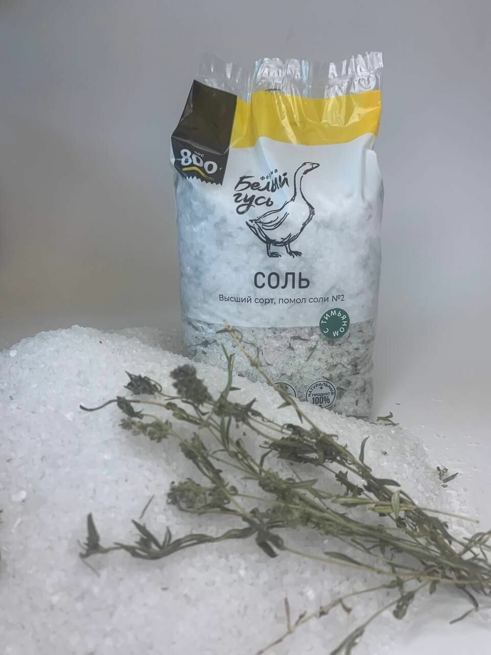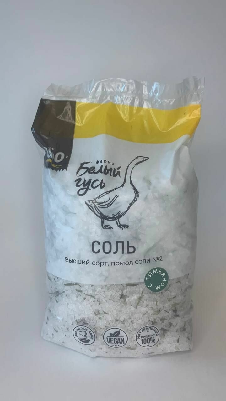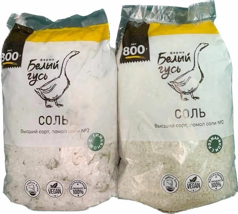 Соль пищевая крупная "Белый Гусь", высший сорт, помол №2, с тимьяном, с розмарином (2 шт по 800 грамм) интересное: