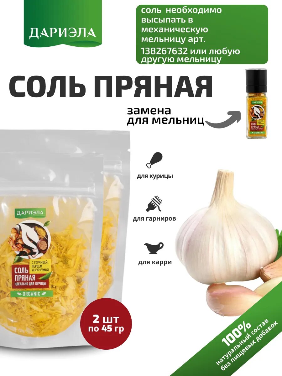 Соль Пряная с горчицей и куркумой, 2 упаковки по 45 гр, ДАРИЭЛА интересное: