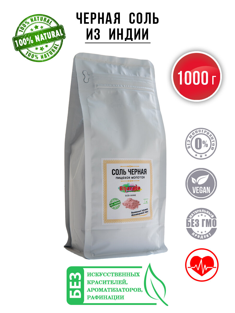 Соль черная пищевая молотая, кала намак. Гималайская соль мелкая, 1000 гр интересное: