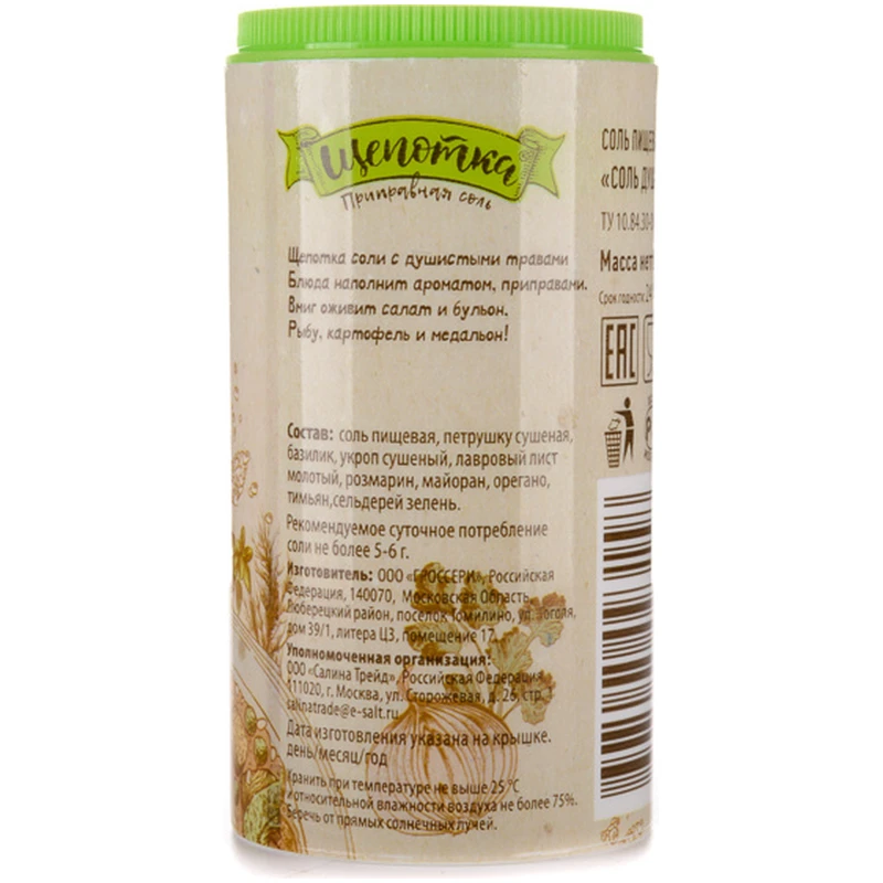 Соль поваренная душистые травы с базиликом и орегано 120 гр*2шт интересное: