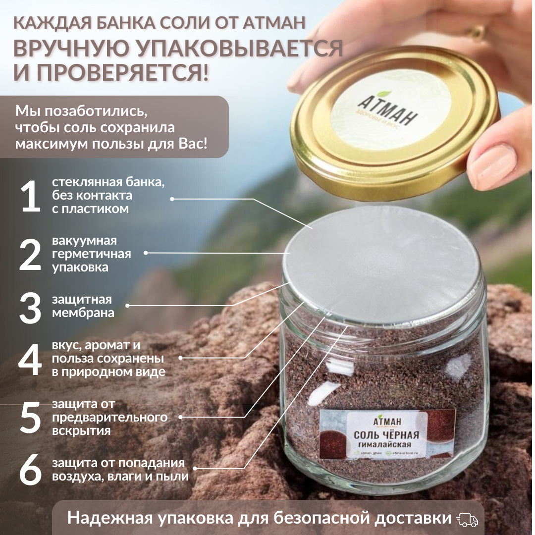 Гималайская соль пищевая средний помол, черная, 400 гр, АТМАН интересное: