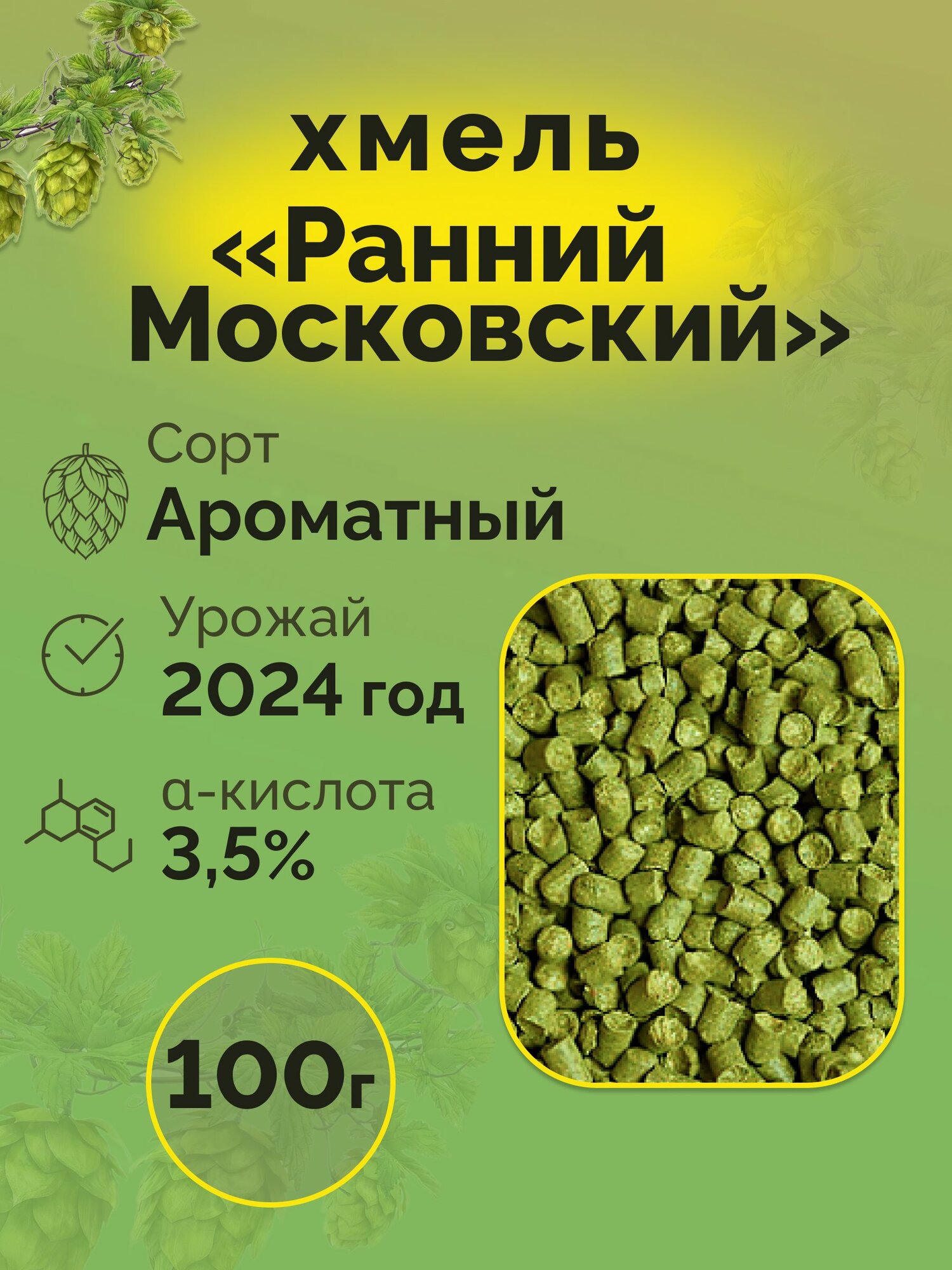 Купить Хмель "Ранний Московский" гранулированный, 100г для приготовления пива