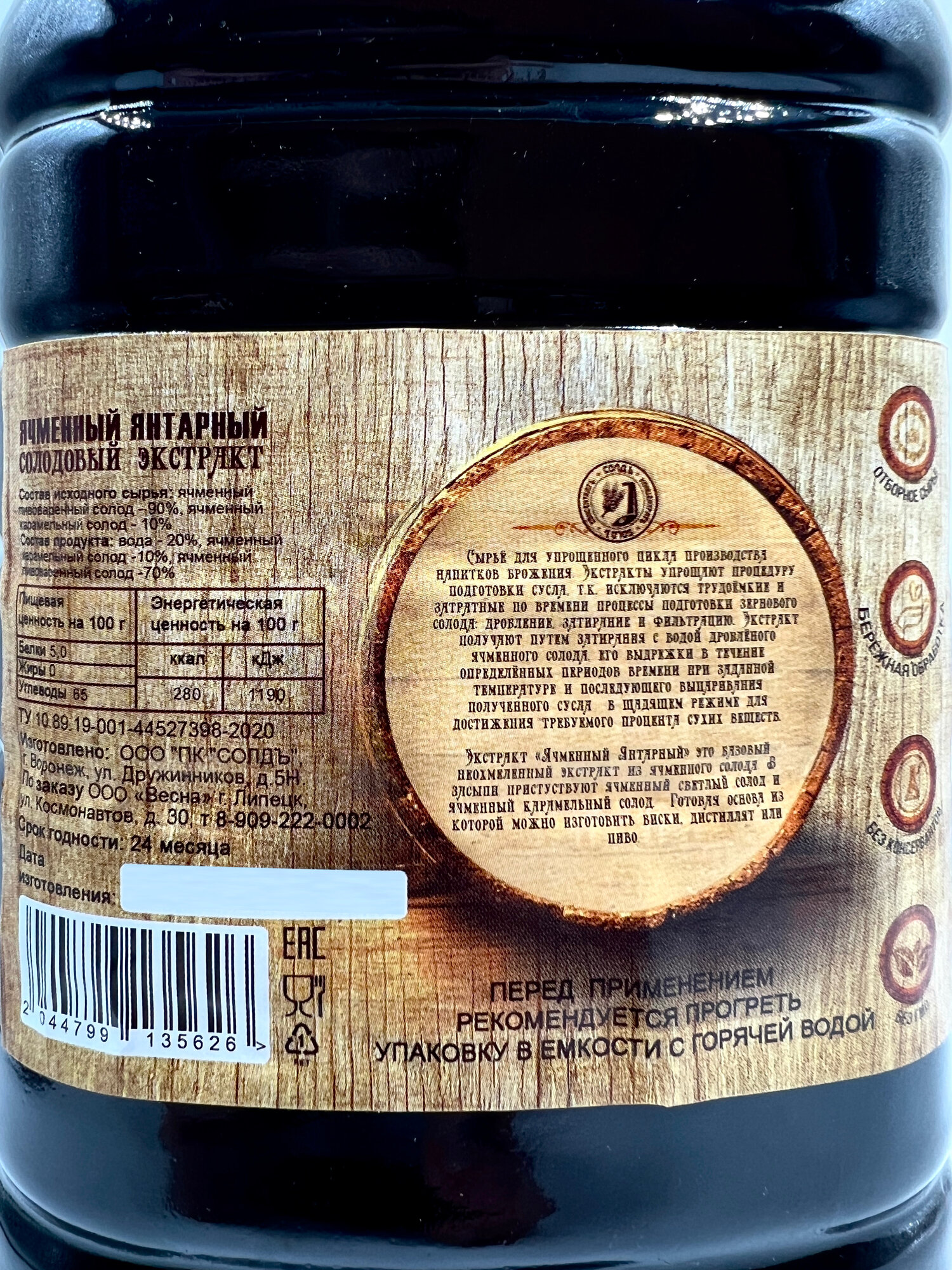 Солодовый экстракт Ячменный Янтарный, 4.1кг, неохмелённый, для пива, для сусла интересное: