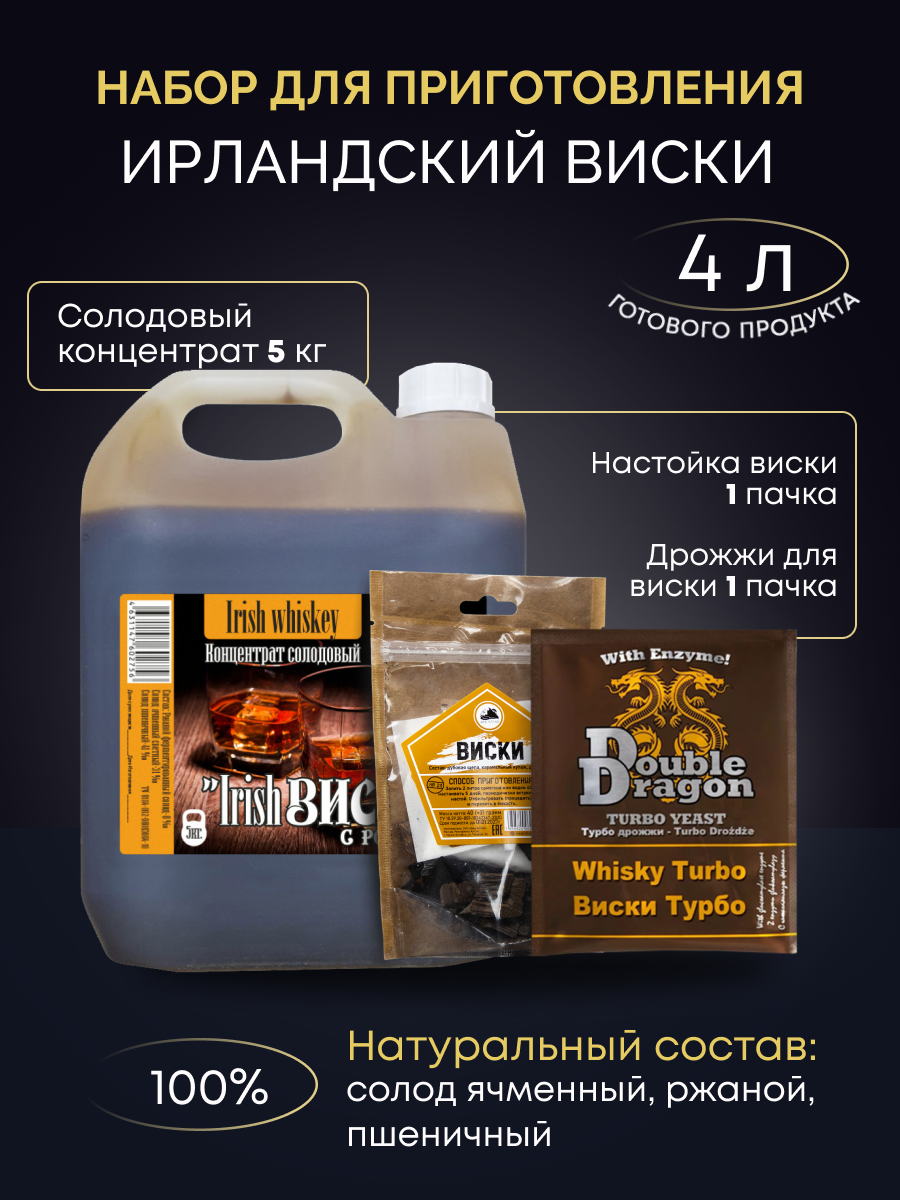 Купить Солодовый концентрат Ирландский виски (Irish) + дрожжи Double Dragon для виски + набор для настаивания Виски Дед Алтай
